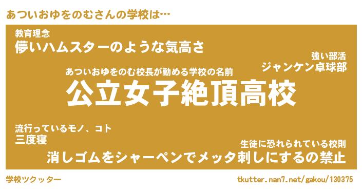 | 胡散臭い通販商品みたいなあだ名 | 『億万長者になれるブレスレット…その名も「あついおゆをのむ」』 |