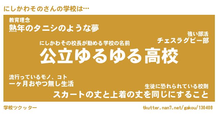 | 男性向けラノベタイトル風あだ名 | 『にしかわそのの憂鬱』 |