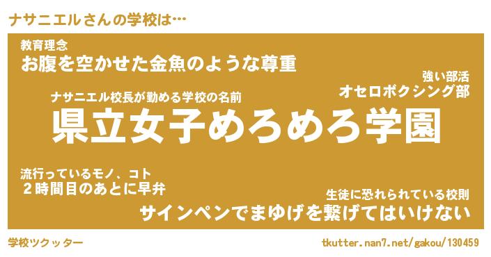 | ファンタジー風あだ名 | 『ナサフェル』『エターナルナサニエルー』 |