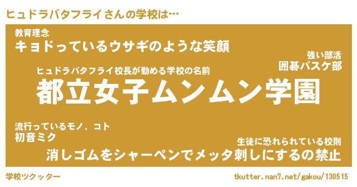 | ヒーロー風カッコイイあだ名 | 『スーパーヒュドラバタフライ』 |