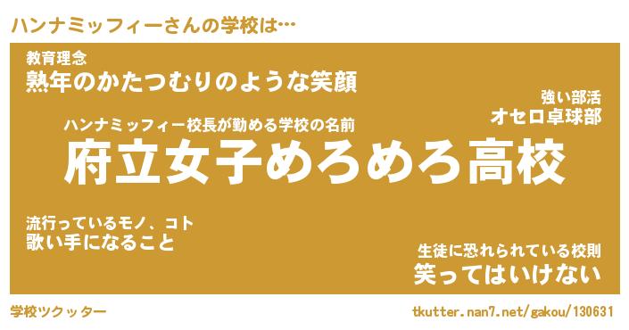 | ヒーロー風カッコイイあだ名 | 『スーパーハンナミッフィー』 |