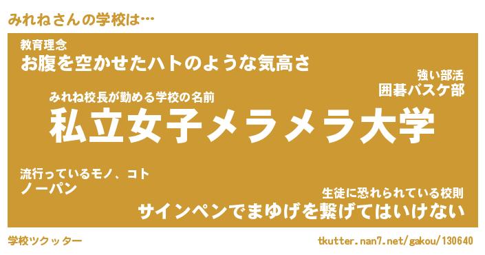 | ヒーロー風カッコイイあだ名 | 『スーパーミレネ』『ウルトラみれねマン』 |