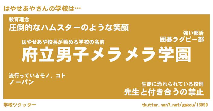 | ファンタジー風あだ名 | 『ハヤフェル』『エターナルハヤセアヤー』 |