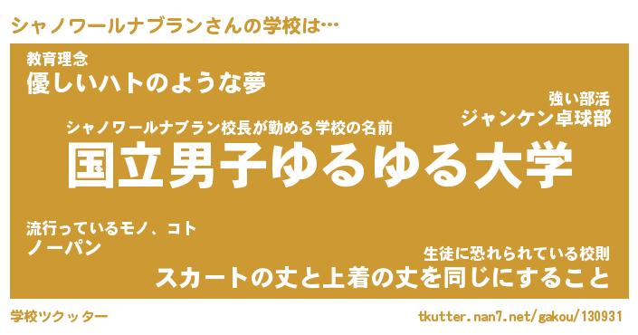 | 男性向けラノベタイトル風あだ名 | 『シャノワールナブランの憂鬱』 |
