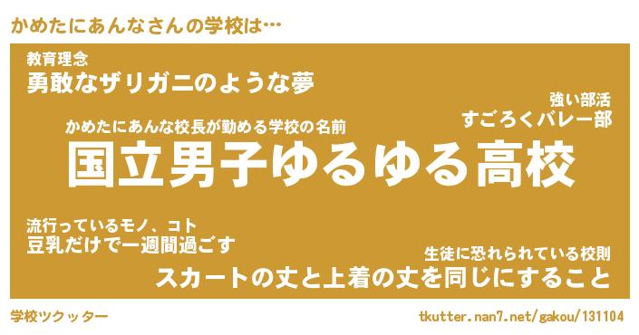 | 男性向けラノベタイトル風あだ名 | 『かめたにあんなの憂鬱』 |
