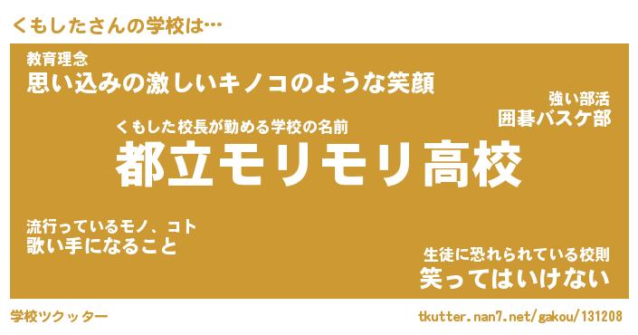 | ヒーロー風カッコイイあだ名 | 『スーパークモシタ』『銀牙騎士クモ』 |