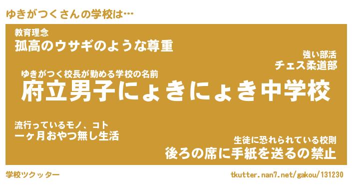 | ヘコむあだ名 | 『ゆきにゅー』『つくし』『ゆき太郎』 |