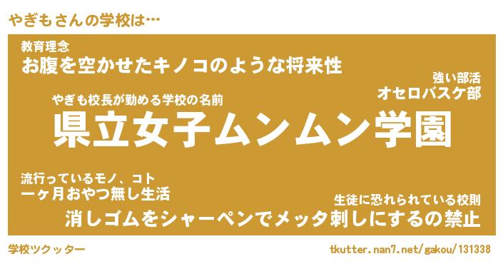 | 意味不明あだ名 | 『ペロリンやぎも』『やぎもフォーエバー』 |