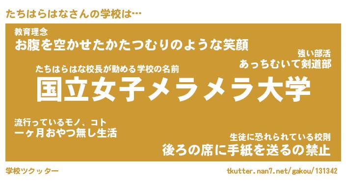 | ヘコむあだ名 | 『たちにー』『つくし』『たちを』 |