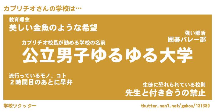 | ヒーロー風カッコイイあだ名 | 『スーパーカプリチオ』『銀牙騎士カプ』 |