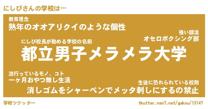 | ファンタジー風あだ名 | 『ニシフェル』『エターナルニシビー』 |