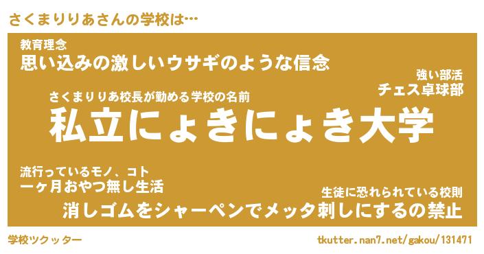 | 男性向けラノベタイトル風あだ名 | 『さくまりりあの憂鬱』 |