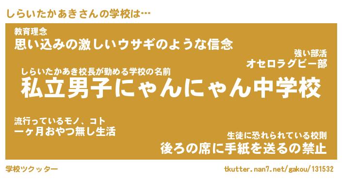 | 意味不明あだ名 | 『ペロリンしらいたかあき』 |