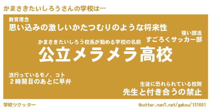 | ヒーロー風カッコイイあだ名 | 『スーパーカマサキタイシロウ』 |