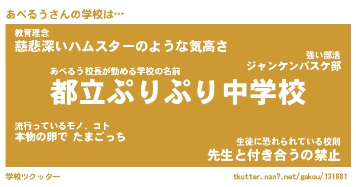 | 意味不明あだ名 | 『ペロリンあべるう』『永久保存あべるう』 |