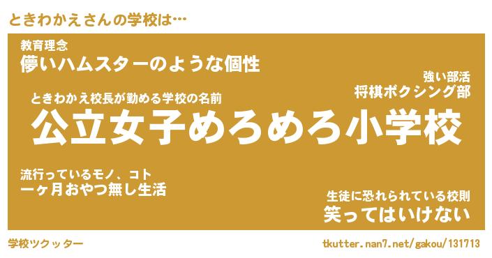 | ファンタジー風あだ名 | 『トキフェル』『エターナルトキワカエー』 |