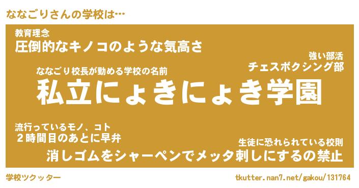 | 男性向けラノベタイトル風あだ名 | 『ななごりの憂鬱』 |