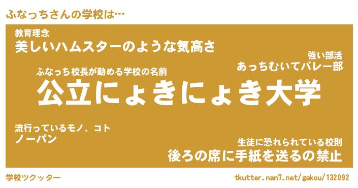 | 男性向けラノベタイトル風あだ名 | 『ふなっちの憂鬱』 |