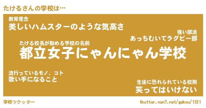 | ヘコむあだ名 | 『たけもー』『牛乳』『たけ太郎』 |