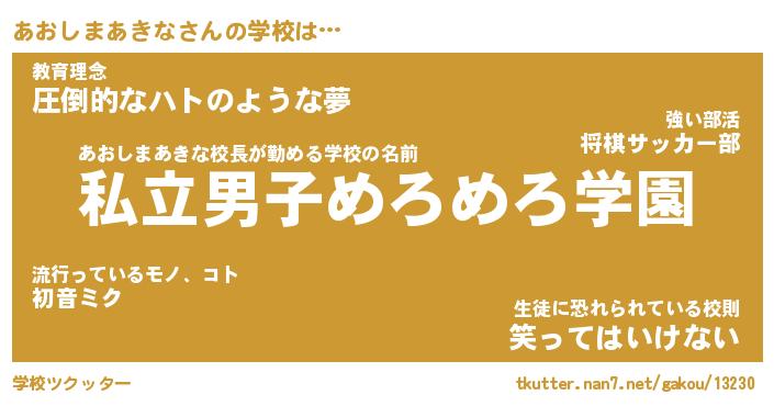 | 男性向けラノベタイトル風あだ名 | 『あおしまあきなの憂鬱』 |