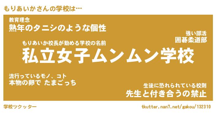 | ヘコむあだ名 | 『もりにゅー』『つくし』『もりお』 |