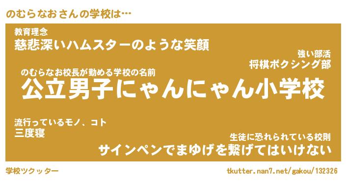 | ピコ太郎風あだ名 | 『ノコ四郎』『ピノ六郎』『ノム五郎』 |