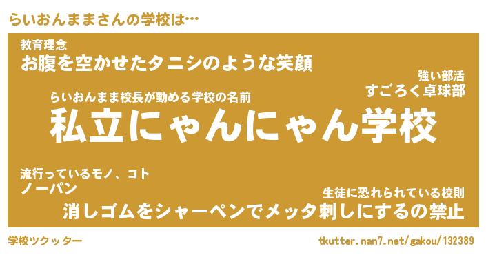 | 男性向けラノベタイトル風あだ名 | 『らいおんままの憂鬱』 |