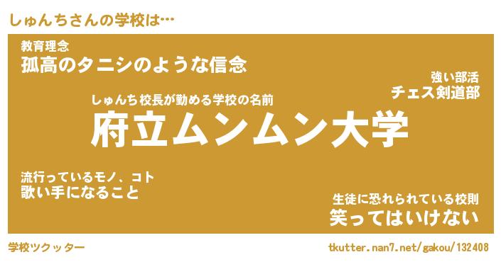 | ヘコむあだ名 | 『しゅにゅー』『つくし』『しゅ太郎』 |