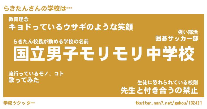 | 男性向けラノベタイトル風あだ名 | 『らきたんの憂鬱』 |