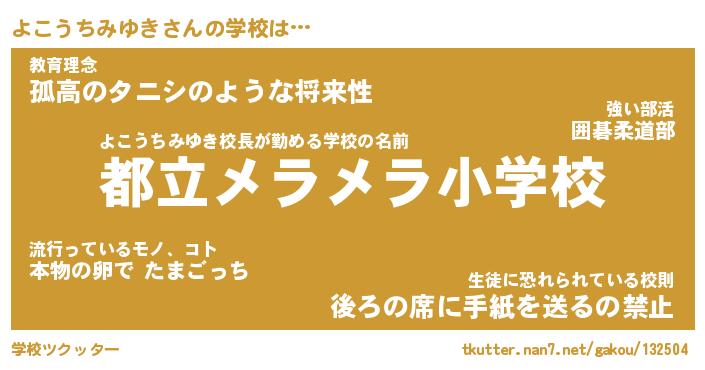 | 恥ずかしいあだ名 | 『プリティーよこうちみゆき』『よこちん』 |