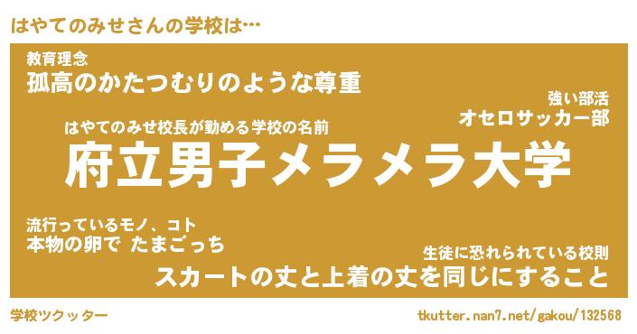 | ヘコむあだ名 | 『はやにー』『つくし』『はや太郎』 |