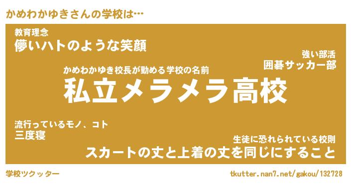| 男性向けラノベタイトル風あだ名 | 『かめわかゆきの憂鬱』 |
