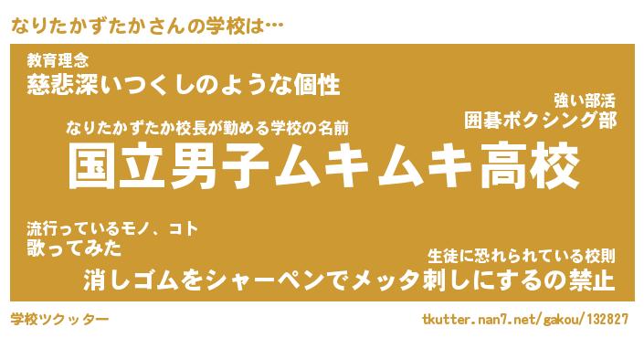 | 男性向けラノベタイトル風あだ名 | 『なりたかずたかの憂鬱』 |