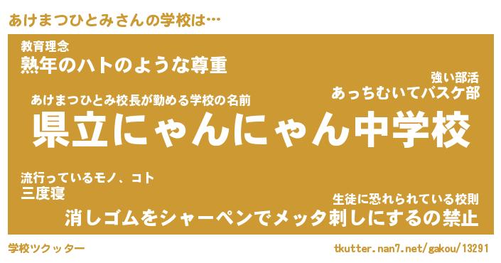 | ヘコむあだ名 | 『あけもー』『つくし』『あけっぺ』 |