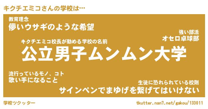 | 男性向けラノベタイトル風あだ名 | 『キクチエミコの憂鬱』 |