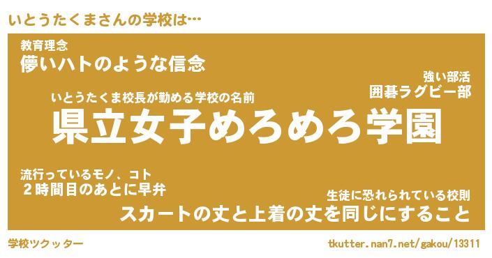 | 先生 | いとうたくま先生が勤める学校名『町立しゃくれ小学校』 |