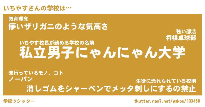 | 意味不明あだ名 | 『ペロリンいちやす』『永久保存いちやす』 |