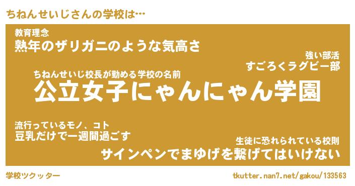 | ヘコむあだ名 | 『ちねもー』『つくし』『ちねぷりん』 |