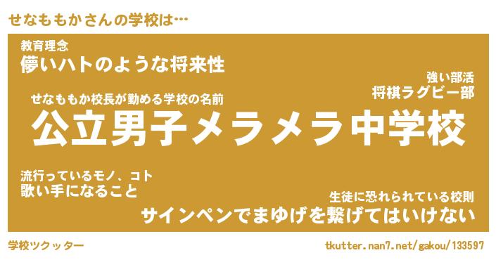 | 男性向けラノベタイトル風あだ名 | 『せなももかの憂鬱』 |