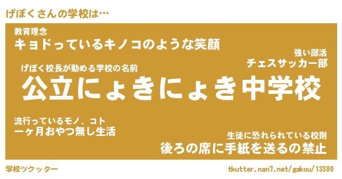 | ヘコむあだ名 | 『げぼにゅー』『酢こんぶ』『げぼを』 |