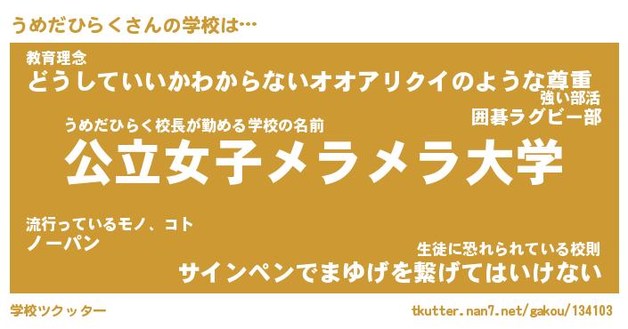 | ヘコむあだ名 | 『うめにー』『豆乳』『うめ太郎』 |