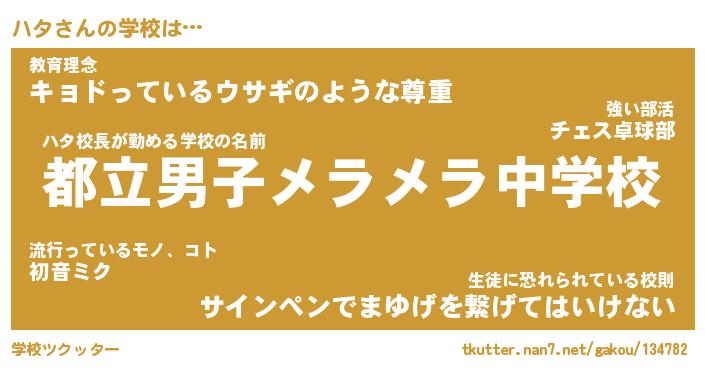 | ファンタジー風あだ名 | 『ハタフェル』『エターナルハター』 |