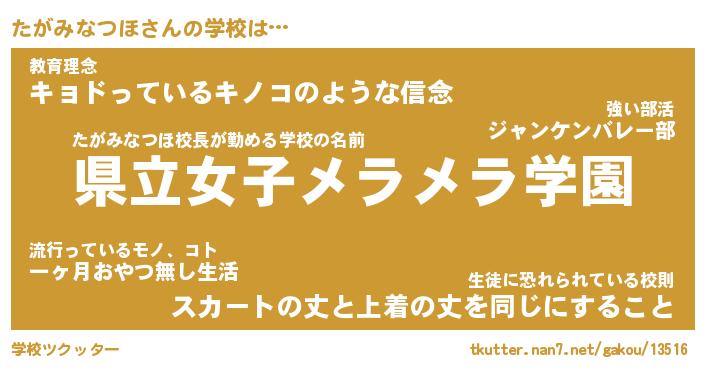 | 肩書あだ名 | 『たがみなつほ社長』『たがみなつほ班長』 |