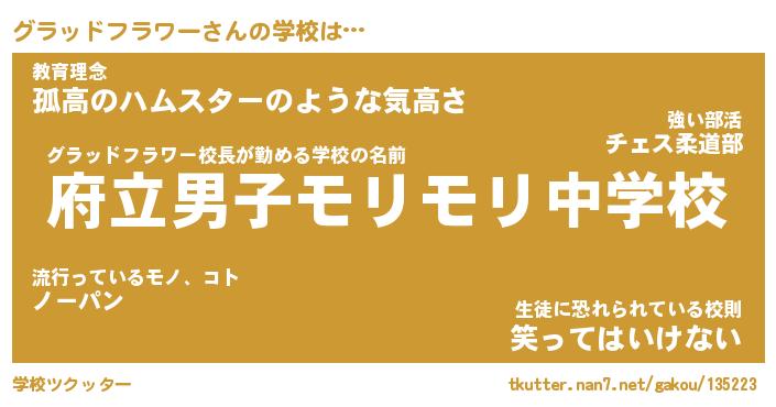 | 女子向けラノベタイトル風あだ名 | 『グラッドフラワー姫と円卓の騎士』 |