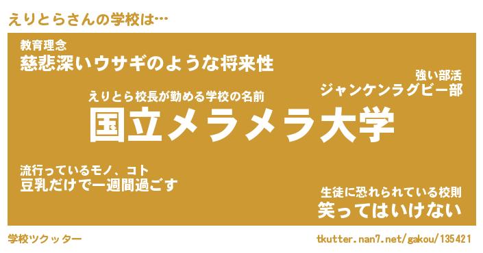 | 肩書あだ名 | 『えりとら社長』『えりとら総理大臣』 |