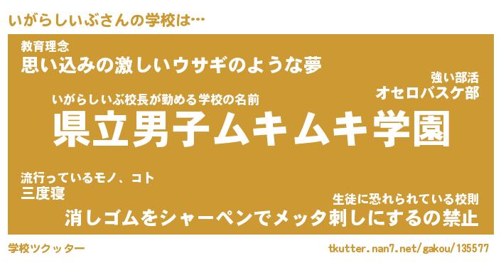 | 女子向けラノベタイトル風あだ名 | 『いがらしいぶ姫と円卓の騎士』 |