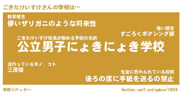 | 男性向けラノベタイトル風あだ名 | 『ごきたけいすけの憂鬱』 |