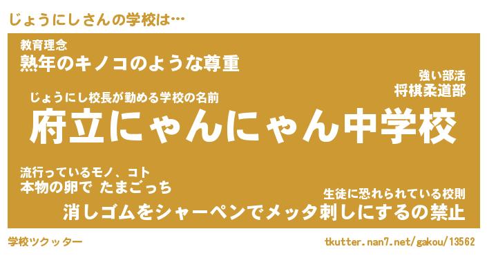 | 男性向けラノベタイトル風あだ名 | 『じょうにしの憂鬱』 |