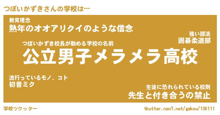 | 男性向けラノベタイトル風あだ名 | 『つぼいかずきの憂鬱』 |
