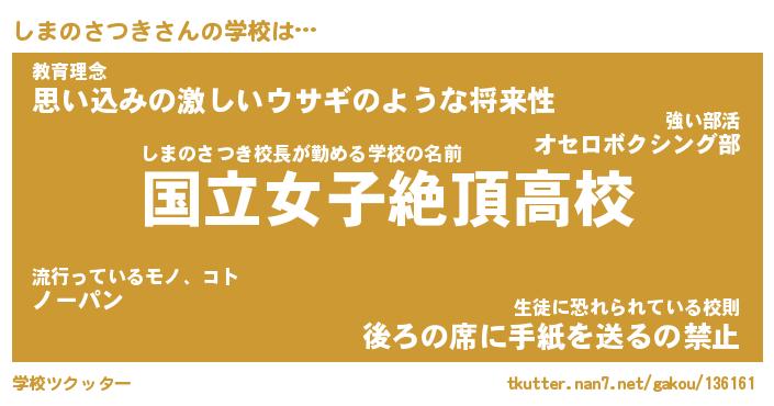 | 肩書あだ名 | 『しまのさつきCEO』『しまのさつき副担任』 |
